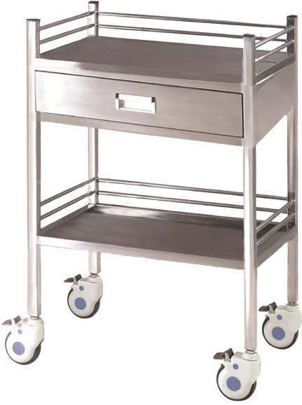 Chariot en acier inoxydable, avec 2 tablettes et 1 tiroir supérieur, dimensions 25,6" L × 18" W × 39,6" H